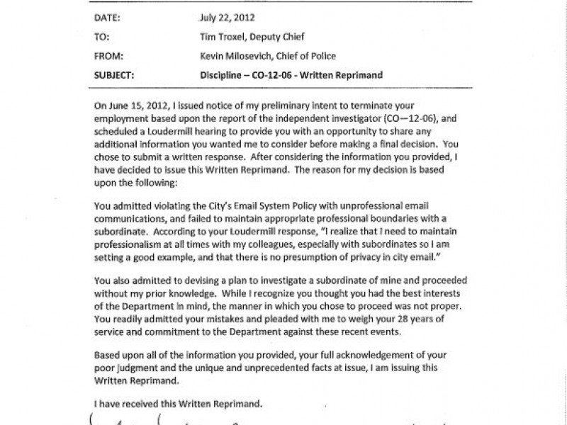 Deputy Police Chief Troxel Gets Letter Of Reprimand In Lieu of Termination Following ... from cdn.patch.com The fourth paragraph should be a short statement of your closing thoughts. Completed to discipline a service member who has demonstrated unacceptable conduct towards other service members or private citizens, one copy of this letter is delivered to the service member and the other is kept in the administrative records to make sure this conduct is prevented in the future. Sample letter of reprimand army. A letter of reprimand or a disciplinary letter is a part of a policy focused on progressive discipline. Memorandum for (person who issued reprimand) from: Indicate the date to the document with the date feature. A letter of reprimand is a us department of defense procedure involving a letter to an employee or service member from their superior that details the wrongful actions of the person and the punishment that can be expected. This handout is designed to give you some basic information about your rights with respect to receiving letters of reprimand (lors), letters of